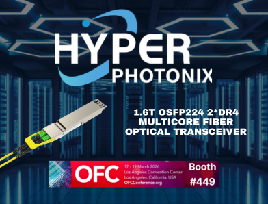 LOS ANGELES — March 16, 2026 — Hyper Photonix today announced a live demonstration of its next-generation 1.6 Tbps optical transceiver operating over 4-core multicore fiber (MCF) at the Optical Fiber Communication Conference (OFC), taking place March 16–20, 2026 in Los Angeles.
